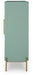 | Details | Made with engineered wood, Light green finish, Goldtone metal door pulls and legs, 2 doors with fluted glass panels, 2 shelves, Minor assembly required, simply lay flat and attach feet | |
