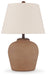 Full of earthy appeal, this table lamp illuminates your space with a textured rust-hued base and brilliantly bright shade. Set it on an end table or console to put your best light forward in creating a homey atmosphere.