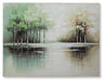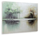 This wall art incorporates a touch of serene style into your decor. Trees are reflected in the rippling water of the foreground, crafting a peaceful landscape you’ll love to get lost in. With its green, tan and white hues, it’s a welcome addition to contemporary interiors.