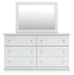 | Details | B139B43: Includes panel headboard/footboard and rails, Made with engineered wood (MDF/particleboard/plywood) and decorative laminate for the right balance of affordability and durability, Replicated solid white paint, Decorative laminate replicates natural or man-made material surfaces with consistent color, pattern and texture, Foundation/box spring required, sold separately, Mattress available, sold separately, Assembly required, B139B40: Includes dresser and mirror, Made of engineered wood (MDF/particleboard), Knobs with pewter-tone finish, Scalloped moulding, 6 smooth-operating drawers, Includes tipover restraint device, Mirror attaches to back of dresser; can also be mounted on wall horizontally or vertically, Safety is a top priority, clothing storage units are designed to meet the most current standard for stability, ASTM F 2057 (ASTM International), Drawers extend out to accommodate maximum access to drawer interior while maintaining safety, B139-91: Made of engineered wood (MDF/particleboard), Pewter-tone knobs, 1 smooth-operating drawer, 1 storage cubby, Scalloped moulding, Small Space Solution, | |