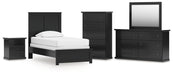 Maribel Twin Panel Bed with Mirrored Dresser, Chest and Nightstand