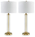 The body of this elegant table lamp has a contemporary flair, with a transparent glass cylinder that reveals a brass-tone rod inside. It's a minimal design made for maximal illumination.