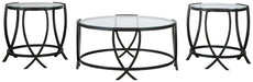 Details Includes coffee table and 2 end tables, Metal base in black finish, Clear tempered glass tabletop with beveled edge, Assembly required