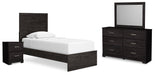 Belachime Twin Panel Bed with Mirrored Dresser and Nightstand