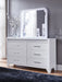 | Details | Includes dresser and mirror, Dresser made with hardwood solids and MDF substrates , Mirror made with solid wood, White paint finish, Dresser with inset acrylic glitter accents, Horizontal metal drawer pulls, 6 drawers with fully finished interiors, dovetail construction and heavy-duty ball-bearing side glides, Textured drawer fronts, Mirror with inset LED lighting; 3-way dimmer switch, Power cord included; UL Listed | |