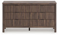 Crafted with both form and function in mind, this dresser brings a dash of retro-cool character to your modern boho aesthetic. Reeded accents add an on-trend touch to its classic silhouette. Warmly welcoming with a rich brown finish, this dresser pairs well with muted hues, earth tones and other neutrals alike. What a refined take on easygoing style.