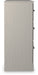 With its clean-lined look and modern attitude, this dresser is a fresh style awakening. A crisp, white hue over subtle replicated wood grain easily complements other furniture finishes. Smooth drawer fronts with antiqued pewter-tone handles complete the aesthetic.