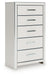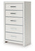 | Details | Made with engineered wood (MDF/particleboard/plywood) and decorative laminate for the right balance of affordability and durability, Matte white finish with subtle replicated wood grain, Decorative laminate replicates natural or man-made material surfaces with consistent color, pattern and texture, Chrome-tone accents, Large-scale chrome-tone handles with faceted details, 5 smooth-gliding drawers, Drawer interiors are lined with a faux linen laminate for a clean, finished look, Safety is a top priority, clothing storage units are designed to meet the most current standard for stability, ASTM F 2057 (ASTM International), Drawers extend out to accommodate maximum access to drawer interior while maintaining safety, Minor assembly required | |