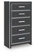 | Details | Made with engineered wood (MDF/particleboard/plywood) and decorative laminate for the right balance of affordability and durability, Matte black finish with subtle replicated wood grain, Decorative laminate replicates natural or man-made material surfaces with consistent color, pattern and texture, Chrome-tone accents, Large-scale chrome-tone handles with faceted details, 5 smooth-gliding drawers, Drawer interiors are lined with a faux linen laminate for a clean, finished look, Safety is a top priority, clothing storage units are designed to meet the most current standard for stability, ASTM F 2057 (ASTM International), Drawers extend out to accommodate maximum access to drawer interior while maintaining safety, Minor assembly required | |