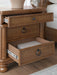 Taking a laid-back approach to casual traditional design, this artfully crafted nightstand combines classic elements with a clean modern approach. Its rich medium brown wood tone exudes a comfy, timeless appeal that's sure to carry you away to a dreamy time and place. Simple round metal knobs and ring pulls on the nightstand's spacious drawers make just the right statement, while an integrated power outlet and USB charging keep your devices powered up overnight.