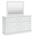 | Details | B139B47: Includes panel headboard/footboard and rails, Made with engineered wood (MDF/particleboard/plywood) and decorative laminate for the right balance of affordability and durability, Replicated solid white paint, Decorative laminate replicates natural or man-made material surfaces with consistent color, pattern and texture, Foundation/box spring required, sold separately, Mattress available, sold separately, Assembly required, B139B40: Includes dresser and mirror, Made of engineered wood (MDF/particleboard), Knobs with pewter-tone finish, Scalloped moulding, 6 smooth-operating drawers, Includes tipover restraint device, Mirror attaches to back of dresser; can also be mounted on wall horizontally or vertically, Safety is a top priority, clothing storage units are designed to meet the most current standard for stability, ASTM F 2057 (ASTM International), Drawers extend out to accommodate maximum access to drawer interior while maintaining safety, | |
