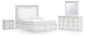 Chalanna King Upholstered Storage Bed with Mirrored Dresser and Nightstand