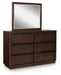 Details PCB857B6: Includes canopy, upholstered headboard, footboard, rails, posts and slats, Made with hardwood solids, mango wood veneer and MDF substrates , Side rails feature laminated solid hardwood slat support rails (or LVL) with glued and screwed blocking for added strength, Complex, rich dark brown finish, Foam headboard cushion with polyester upholstery , Measure room, including ceiling height, to ensure bed clears fans and light fixtures, Foam cushion with polyester upholstery , Foundation/box spring required, sold separately , Mattress available, sold separately , USB-A and USB-C charging ports, Power cord included; UL Listed, Assembly required, PCB857B1: Made with hardwood solids, mango wood veneer and MDF substrates , Complex, rich dark brown finish, Full-length metal rail pulls with matte black finish, 6 smooth-gliding drawers with fully finished interiors, dovetail construction and heavy-duty ball-bearing side glides (top drawers felt lined), Mirror attaches to back of dresser, Soft rounded pilasters, Raised plinth base, PCB857-46: Made with hardwood solids, mango wood veneer and MDF substrates, Complex, rich dark brown finish, Metal rail pulls with matte black finish, 5 smooth-gliding drawers with fully finished interiors, dovetail construction and heavy-duty ball-bearing side glides (top drawer felt lined), Soft rounded pilasters, Raised plinth base, PCB857-92: Made with hardwood solids, mango wood veneer and MDF substrates, Complex, rich dark brown finish, Metal rail pulls with matte black finish, 2 smooth-gliding drawers with fully finished interiors, dovetail construction and heavy-duty ball-bearing side glides (top drawer felt lined), Soft rounded pilasters, Raised plinth base,