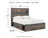 | Details | B211B1: Made of engineered wood (MDF/particleboard) and decorative laminate, Brown rustic finish with burnt orange and teal accents in a replicated wood grain with authentic touch, 6 smooth-gliding drawers, Drawers lined with faux linen laminate, Dark-tone industrial hardware, Mirror attaches to back of dresser, Assembly required, Includes tipover restraint device, B211B45: Includes bookcase headboard, footboard, 2 underbed storage units, rails and wood roll slats, Made of engineered wood (MDF/particleboard) and decorative laminate, Brown rustic finish with burnt orange and teal accents in a replicated wood grain with authentic touch, Footboard with 4 drawers and 4 open cubbies that each accommodate 10.5"W x 10.5"D x 11"H cube storage bin (not provided), Headboard includes a dimming LED light; 3 open cubbies, Dark-tone industrial hardware, Included slats eliminate need for foundation/box spring, Mattress available, sold separately, Assembly required, | |