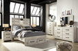 | Details | B192-46: Made of engineered wood (MDF/particleboard) and decorative laminate, Wispy white finish over replicated oak grain with authentic touch, Large-scale hardware with dark finish, 5 smooth-gliding drawers, Drawer interiors are lined with a faux linen laminate for a clean, finished look, Safety is a top priority, clothing storage units are designed to meet the most current standard for stability, ASTM F 2057 (ASTM International), Drawers extend out to accommodate maximum access to drawer interior while maintaining safety, B192-92: Made of engineered wood (MDF/particleboard) and decorative laminate, Wispy white finish over replicated oak grain with authentic touch, Large-scale hardware with dark finish, 2 smooth-gliding drawers, Drawers lined with faux linen laminate for finished aesthetic, 2 slim-profile USB charging stations, Power cord included; UL Listed, B192B1: Includes dresser with mirror, Made of engineered wood (MDF/particleboard) and decorative laminate, Wispy white finish over replicated oak grain with authentic touch, 6 smooth-gliding drawers, Drawer interiors are lined with a faux linen laminate for a clean, finished look, Large-scale hardware with dark finish, Mirror attaches to back of dresser, Assembly required, B192B34: Includes headboard, footboard, side storage, rails and slats, Made of engineered wood (MDF/particleboard) and decorative laminate, Wispy white finish over replicated oak grain with authentic touch, Large-scale hardware with dark finish, Decorative sconce light, LED with 3 AA batteries, 4 smooth-gliding storage drawers, 4 storage cubbies, 2 slim-profile USB charging ports, Power cord included; UL-listed, Bed does not require additional foundation/box spring; accommodates most zero clearance adjustable bases with the addition of a bunkie board, Mattress available, sold separately, Assembly required, | |