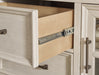 | Details | B683B6: Includes panel headboard, footboard, rails and slats, Made with hardwood solids, veneers and MDF substrates, Two-tone finish (antiqued white and light gray wood tone), Foundation/box spring required, sold separately, Mattress available, sold separately, Assembly required, B683B1: Includes dresser and mirror, Made with hardwood solids, veneers and MDF substrates, Two-tone finish (antiqued white and light gray wood tone), Dark bronze-tone bar pulls, 2 glass-front cabinets, each with single storage shelf, 5 drawers with fully finished interior, dovetail construction and heavy duty ball-bearing side glides (top drawer felt lined), Mirror attaches to back of dresser, B683-92: Made with hardwood solids, veneers and MDF substrates, Two-tone finish (antiqued white and light gray wood tone), Dark bronze-tone bar pulls, 2 drawers with fully finished interior, dovetail construction and heavy duty ball-bearing side glides (top drawer felt lined), 110V power supply with USB-A and USB-C charging ports, Power cord included; UL Listed, | |