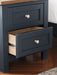 Add homespun charm to your restful retreat. A modern take on a timeless silhouette, this nightstand pairs a dark slate blue finish with a light brown top. Drawer fronts and legs in a classic Shaker style bring an air of beautiful simplicity to the bedroom. Whether it's part of a charmingly curated guest suite or a casually carefree kids room, this nightstand is a welcome addition.