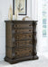 | Details | Made with hardwood solids, oak and ash swirl veneers, MDF substrates and cast resin components, Dark brown finish, 5 smooth-gliding drawers with dovetail construction (top drawer felt lined), Drawer pulls with antiqued goldtone finish | |
