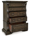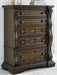 From its ornamental appliques to its large scale, this chest of drawers makes a bold statement. Spacious drawers store your clothes and more in stunning style. The look is timeless. The feel? Right at home.