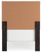 With its clean-lined look and modern attitude, this bedroom package is a fresh style awakening. A warm charcoal hue over replicated oak grain easily complements other furniture finishes. Smooth drawer fronts with antiqued pewter-tone handles complete the aesthetic.