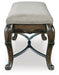 From its ornamental appliques to its large scale, this dining bench makes a bold statement. With ornately shaped legs, a plush cushioned seat and a storage drawer, the opulent bench wows with stunning style. The look is timeless. The feel? Right at home.