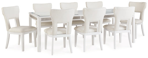 Signature Design by Ashley®Embracing modern glamour, this dining room ensemble is a sparkling addition to your dining area. A bright white lacquer finish, shimmering rhinesto...