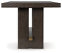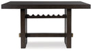 Dressed to thrill, this counter height dining table offers a high-design look at a down-to-earth price. Ultra-sleek lines are accentuated with a dark waxy brown oak-tone finish that’s so easy on the eyes. A thick tabletop and a pedestal base with integrated wine rack showcase quality craftsmanship and attention to detail. Clean-lined and modern, this timeless table has a look that’s made to last.