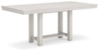 | Details | Made with rubberwood solids, ash veneer and MDF substrates, Antiqued white finish with wood grain texture, Tabletop with planked effect, Two 12” extension leaves, Table extends by pulling both ends and dropping in leaf, Assembly required | |