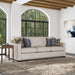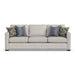 A Legacy of Luxury Timeless sophistication meets modern versatility with the Milo three-cushion sofa, a spacious and upscale piece that is curated to fill larger spaces with coziness and is built to last for generations. Featuring softly sloped arms with French seams, thoughtful welt detail on the seat cushions, hand-applied nailhead trim, and included accent pillows; customize this sofa with hundreds of fabric choices. For distinctive style designed to be everlasting, look no further than Milo. Large-scale frame features deep seats for spacious comfort Softly sloping arms with French seams Tasteful nailhead trim along the bottom rail, available in four finish options Square-tapered legs, available in three finish options Includes four accent pillows in your choice of fabric to match your personal style Built to last with Flexsteel’s Blue Steel Spring™ seat system providing unmatched support and durability Reversible, high-density foam core seat cushions, engineered to maintain their shape over time, complete with a layer of recovery foam for everlasting quality and luxurious comfort Loose, box back cushions can be flipped and rotated Sustainably sourced, kiln-dried wood frame with mortise and tenon joinery for lasting strength Upholstered in the expertly tailored fabric of your choice, including high-performance and sustainable options Handcrafted in North America Model Number: 7051-32 Dimensions 37H x 97W x 39L