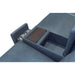 Upholstered in an admiral blue fabric that is durable, moisture-resistant, easy to clean, and looks and feels like leather