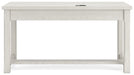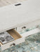Details Made with hardwood solids, oak veneer and MDF substrates, Antiqued white finish with wood grain texture, Round metal knobs with dark bronze-tone finish, Smooth-gliding accessories drawer, Wide keyboard drawer with drop-down front, 110V power supply with USB-A and USB-C charging ports, Power cord included; UL Listed, Assembly required