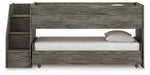 | Details | Includes loft bed, left storage steps with loft ends, loft caster bed and 2 sets of roll slats, Made with engineered wood (MDF/particleboard/plywood) and decorative laminate for the right balance of affordability and durability, Rustic warm gray finish over replicated oak grain with authentic touch, Decorative laminate replicates natural or man-made material surfaces with consistent color, pattern and texture, Bed does not require additional foundation/box spring, Mattress available, sold separately, Assembly required | |