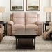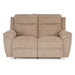 Grab a spot on the Joel Power Reclining Loveseat with Headrest. Smooth lines and lush cushions catch the eye; pillowy arms pull you in. Push the button to recline the plush chaise seats and adjust headrests to a zone of comfort as stress drifts away.