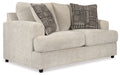 Flaunting a trendsetting silhouette, this sofa, loveseat and swivel accent chair put the contemporary in your contemporary home. The sofa and loveseat’s “three over two” profile eliminates the center seat cushion, giving you elongated plushness and deep seating. The 360-degree swivel of the accent chair gives you an around-the room view to complement your comfort. Chunky chenille fabric satisfies your need for a piece that feels as good as it looks. Accented with soft jacquard chenille throw pillows for a splash of geometric pattern and color contrast.
