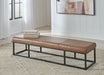 This accent bench takes a contemporary approach to everyday function. Showcasing a sleek combo of caramel leather upholstery and a black frame, it's a chic and convenient seating solution. Place this bench by the entryway, or at the foot of your bed, as a spot for slipping on shoes or resting bags and purses.