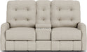 The most handsome seat in the house Devon’s profile includes puckered stitching and a tufted back, which provides contrast and style while delivering extreme comfort and relaxation. Feel content while you lean back and rest your feet on the fully padded footrest. Lightly padded armrests outline its traditional design. A smooth reclining mechanism lets you change angles effortlessly from an upright to a fully reclined position. The center console provides a place to store remotes and other personal items. Available in more than 250 fabric options Also available in Performance fabrics - Revolution and LiveSmart Removable backs allow for easy lifting and maneuvering through doorways. Also available with nailhead trim (2881-601) Model Number: 2882-601 Dimensions 42H x 72W x 41L
