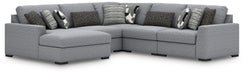 Details Includes 5 modular pieces: left-arm facing corner chaise, 2 armless chairs, wedge and right-arm facing corner chair, "Left-arm" and "right-arm" describe the position of the arm when you face the piece, Modular pieces can float anywhere; sides are finished (with no connectors), Corner-blocked frame, Reversible seat and back cushions; high-resiliency foam cushions wrapped in poly fiber, Accent pillows included; pillows with soft polyfill, Polyester upholstery, Next-Gen Nuvella is a performance fabric that is soft, easy to clean, stain-resistant and durable, Easy-to-remove zippered covers for machine washing, Clean fabric with mild soap and water, let air dry; for stubborn stains, use a solution of 4 oz. bleach to 28 oz. water, Low-profile accent legs with faux wood finish, Platform foundation system resists sagging 3x better than spring system after 20,000 testing cycles by providing more even support, Smooth platform foundation maintains tight, wrinkle-free look without dips or sags that can occur over time with sinuous spring foundations