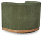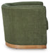 Take contemporary style for a spin with this accent chair. Handsome in a deep forest green, it adds a splash of sophistication to a reading nook or living room. The chair's handy swivel base ensures you can always find your perfect angle, while wood accent trim perfectly punctuates the look.