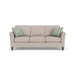 Libby is a transitional stationary style with clean lines and graceful curves. Its off-the-floor frame is complimented by square tapered legs. This sofa features an elegant roll arm with a detailed welt trim. Two square accent throw pillows are provided. The posh and plush style of Libby fits in with many home décor spaces.