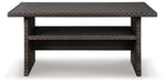 Alfresco living is easy to love with this multi-use table. Its raised height makes it perfect for mealtime, game time, a round of cards or a round of drinks. Resin wicker over a rust-free aluminum frame lends an upscale aesthetic that’s downright durable. Aluminum top is conveniently water and stain resistant.