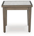 Experience the perfect combination of durability and style with this outdoor end table. An aluminum frame with a wood-look finish maintains a sleek, contemporary aesthetic, while the sintered stone tabletop adds an element of natural elegance. This delightful companion to your outdoor seating creates an oasis where comfort and beauty thrive.