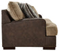 | Details | Corner-blocked frame, Loose seat and back cushions, High-resiliency foam cushions wrapped in poly fiber, Polyester interior upholstery and faux leather exterior upholstery, Throw pillows included, Pillows with feather-fiber fill, Bronze-tone nailhead trim, Platform foundation system resists sagging 3x better than spring system after 20,000 testing cycles by providing more even support, Smooth platform foundation maintains tight, wrinkle-free look without dips or sags that can occur over time with sinuous spring foundations | |