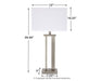 | Details | Made of metal with fabric hardback shade, 3-way switch, 1 type A bulb (not included); 100 watts max or LED equivalent; UL Listed, Clean with a soft, dry cloth, Assembly required | |