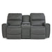 Take command of relaxation and convenience on the Apollo Reclining Loveseat with Console. Padded track arms add a modern boost. Tall, cozy bucket chaise seats recline to optimal comfort. And the console keeps snacks, drinks and remotes under control.
