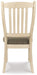The beauty of this upholstered dining chair is something to savor. Designed to serve up comfort and flair, this rake-back dining chair entices with a cushioned seat covered in a heavy woven fabric that complements the chair’s antiqued white finish.