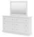 | Details | Includes dresser and mirror, Made of engineered wood (MDF/particleboard), Knobs with pewter-tone finish, Scalloped moulding, 6 smooth-operating drawers, Includes tipover restraint device, Mirror attaches to back of dresser; can also be mounted on wall horizontally or vertically, Safety is a top priority, clothing storage units are designed to meet the most current standard for stability, ASTM F 2057 (ASTM International), Drawers extend out to accommodate maximum access to drawer interior while maintaining safety | |
