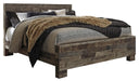 Modern yet hefty. This queen panel bed makes an urban eclectic statement. Seasoned raw wood look merges with the clean lined design we love today. Muted rustic finish over replicated pine grain maintains its authenticity for a beauteous look. Mattress and foundation/box spring available, sold separately.