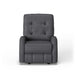 The most handsome seat in the house Devon’s profile includes puckered stitching and a tufted back, which provides contrast and style while delivering extreme comfort and relaxation. Feel content while you lean back and rest your feet on the fully padded footrest. Nailhead trim outlines the front of the arms adding flair to its traditional design. A power rocking reclining mechanism lets you rock and change angles effortlessly from an upright to a fully reclined position with the touch of a button. Power mechanism allows you to smoothly recline to any position. Safety locks prevent the recliner from rocking while reclining. Removable back allows for easy lifting and maneuvering through doorways. Model Number: 3882-51M Dimensions 41H x 34W x 40L