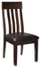 Take clean-lined, classic styling. Add modern comfort. Top with a deep, complex finish that exudes rich sophistication. That’s the look and feel of this dining room chair. Wide-slat, rake-back design with lumbar curve and cushioned upholstered seat make it complete.