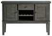 Cool and on-trend. This versatile server sports an antiqued gray color for a contemporary-yet-casual feel. The server features two cabinets, a smooth-gliding drawer and an open cubby with a wine rack, making it a breeze to clear away clutter and expand your serving space. Dining with friends and family has never been so stylish.